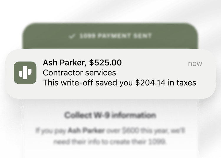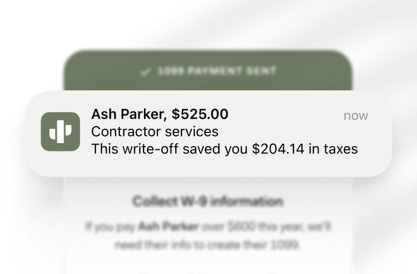 Found brings banking, payments, and bookkeeping together with no required monthly or per-contractor fees.⁴ With everything tracked in one place, there’s no need to reconcile across platforms. Each payment is automatically recorded as a deductible expense, helping you keep more of what you earn.