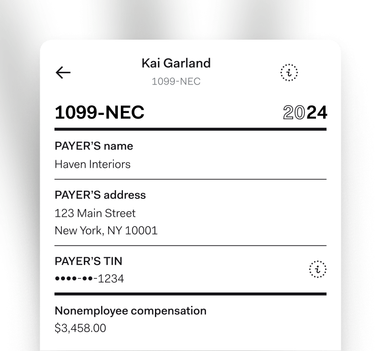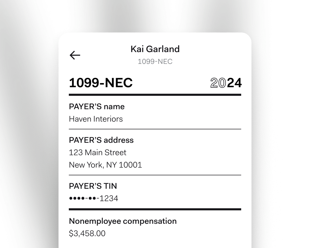 At the end of the year, Found automatically generates complete 1099-NEC forms for any contractors you’ve paid over $600 and can even file them for you.