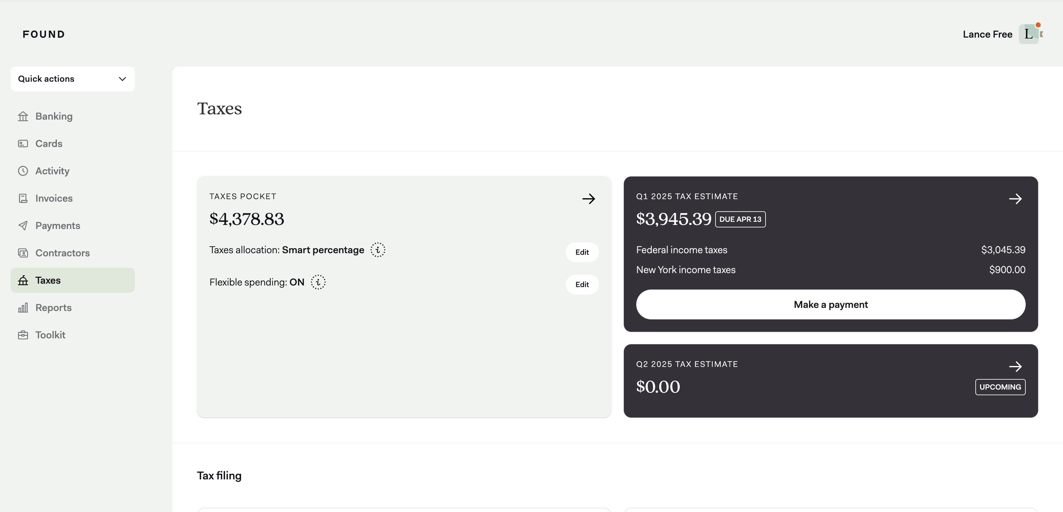 Learn more: How to pay your quarterly taxes in Found