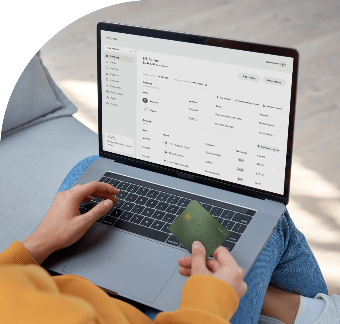 Payments and deposits flow directly into your Found account, with the estimated taxes set aside.
