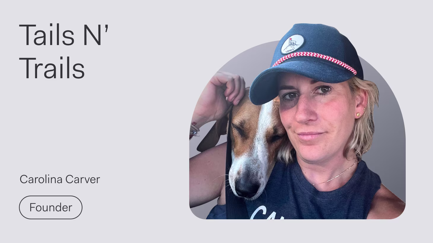Carolina started Tails N' Trails in 2017 because she saw a gap in the market. After years of paying high prices for her dogs' care—and being disappointed by traditional daycare facilities—she built something different: an outdoor-adventure-focused pet service that matches dogs with consistent, vetted caretakers for off-leash hikes, personalized walks, and in-home boarding.